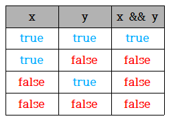 위의 표는 && 연산자의 결과를 표로 작성한 것이다.