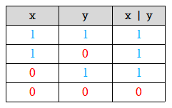 비트논리 OR 연산자(|)는 둘 중 하나만 1이어도 1이 되고