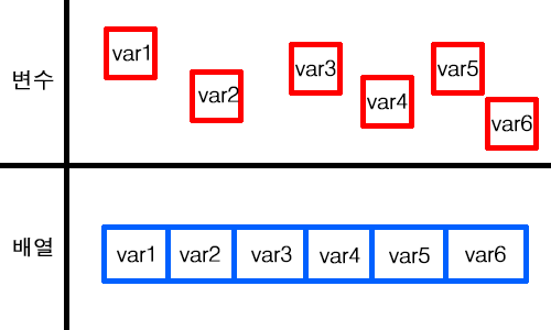 배열에서는 여러 변수들을 하나로 묶어주기 때문에
