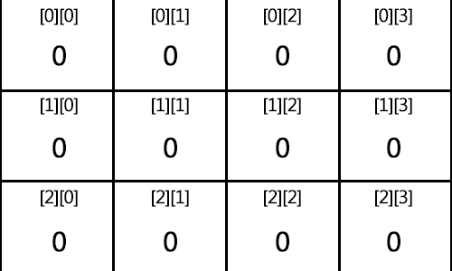 그렇기 때문에 선언을 할 때도 [3][4]과 같이 인덱스를 2개를 선언해줘야 한다.