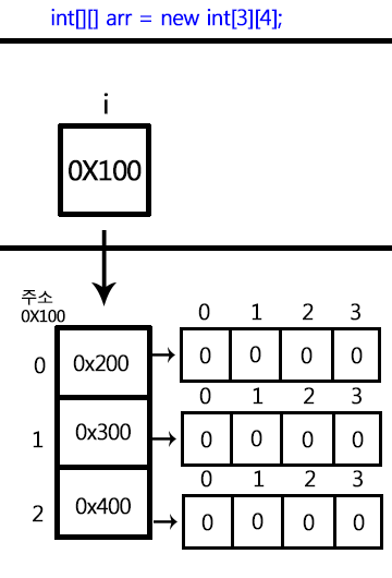 앞의 [3]이 1차원 배열의 방 개수, 뒤의 [4]가 각각의 방의 새로운 방 개수가 되겠다.