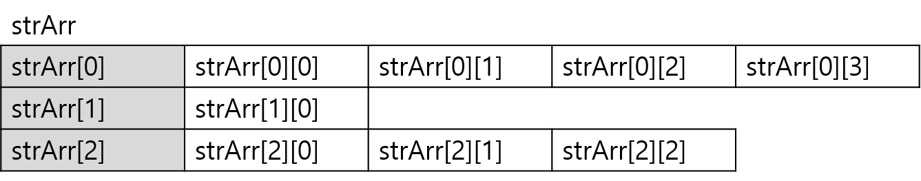배열의 각 요소마다 각기 다른 크기의 배열로 지정할 수 있는 것이다.