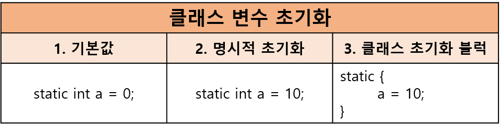 클래스 변수 초기화의 경우에는 클래스가 생성되는 시점에서 실행되기 때문에